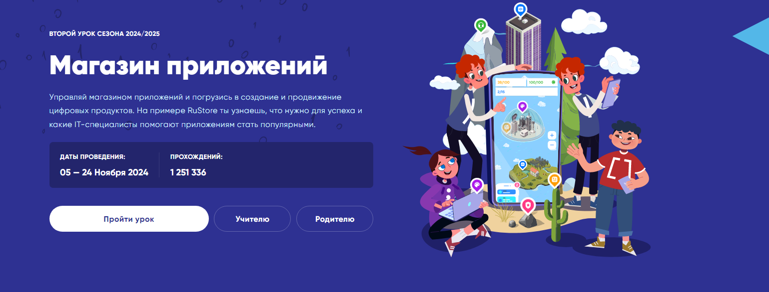 миллионы школьников с востребованными цифровыми направлениями и продуктами — от видеотехнологий до мессенджеров. Каждый год мы выбираем актуальные темы, чтобы процесс погружения ребят в мир технологий был не только интересным и увлекательным, но и полезным для них в будущем. В этот раз вместе с экспертами крупнейшего российского магазина приложений RuStore мы разработали урок, который даст возможность школьникам, учителям и родителям узнать больше об устройстве и технологиях магазина приложений и специалистах, которые занимаются созданием и развитием таких сервисов», — прокомментировала Анна Степанова, заместитель вице-президента по образовательным проектам VK.